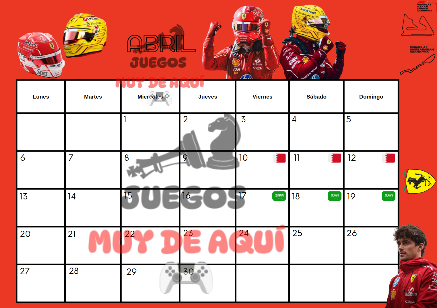 Nuevo calendario de la fórmula uno, donde podréis estar al tanto de las carreras de cada fin de semana, a la vez que os organizáis vuestro día a día. ¿Estáis preparados para no perderos nada?